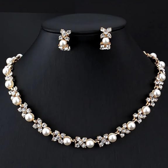 Stylish latest simulated pearl necklace with earrings.