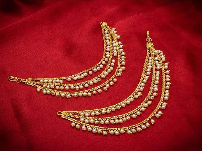 Ear Chains For Womens Earrings For Women Girl Stylish Latest Design Indian Bollywood Gold Plated Faux Pearl Sahara Chain Set For Earring Support Ear Chains Traditional Jewelry