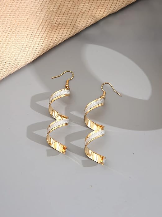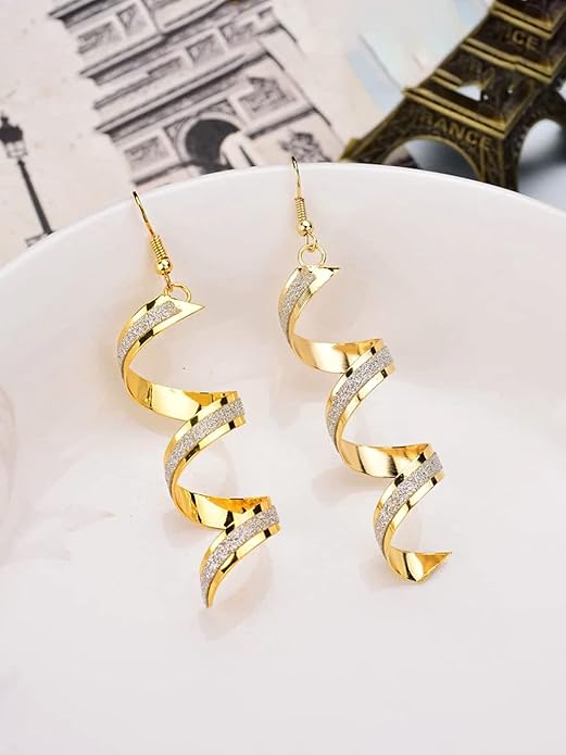 - ELEGANT DESIGN & VERSATILE: These Earrings are crafted with gold plated Alloy material, providing a stylish and lightweight option for everyday wear. The smooth finished Spiral design adds an elegant touch, making it perfect for women looking to enhance their fashion statement.