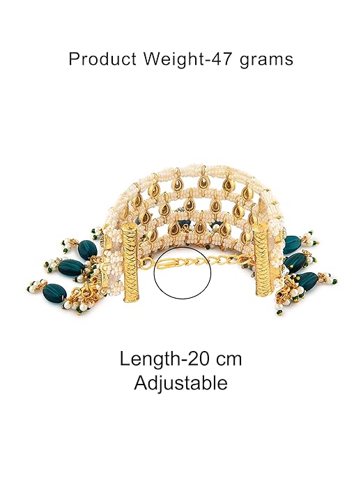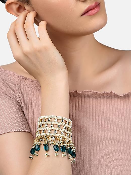 - Feature:Nothing can beautify your wrist like bracelets embellished with kundan & beads. You definitely cannot miss out on this kundan bracelet because its totally worthy, especially for its elegance and royal look.
