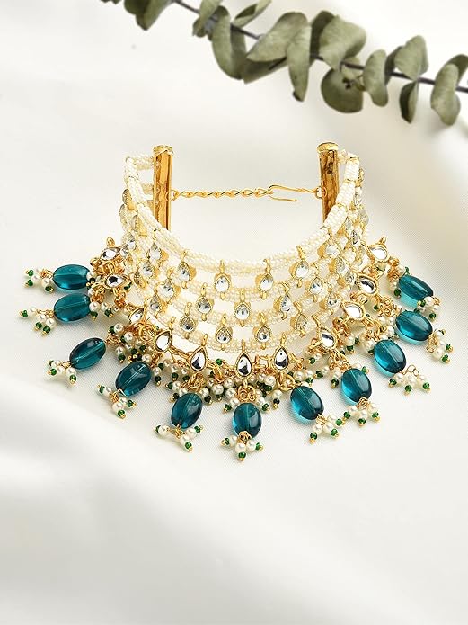 - Color: Green, Plating: 22K Yellow Gold, Material: Alloy, Stone: Kundan & Beads
