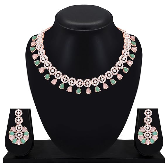 Crystal Necklace Jewellery Set with Earrings | Best Suited for Party, Wedding, and Festive Occasions for Women