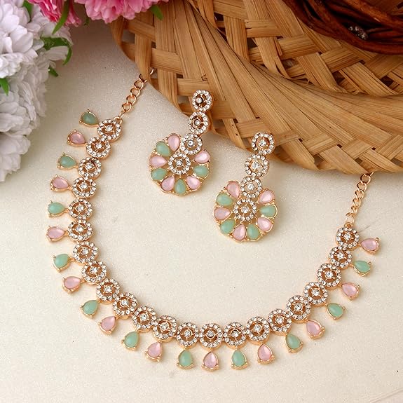 Kundan and American Diamond Necklace Jewellery Set with Earrings for Women | Ideal for Party, Festivals and Special Occasions