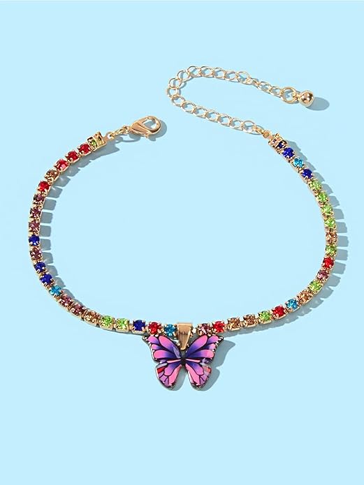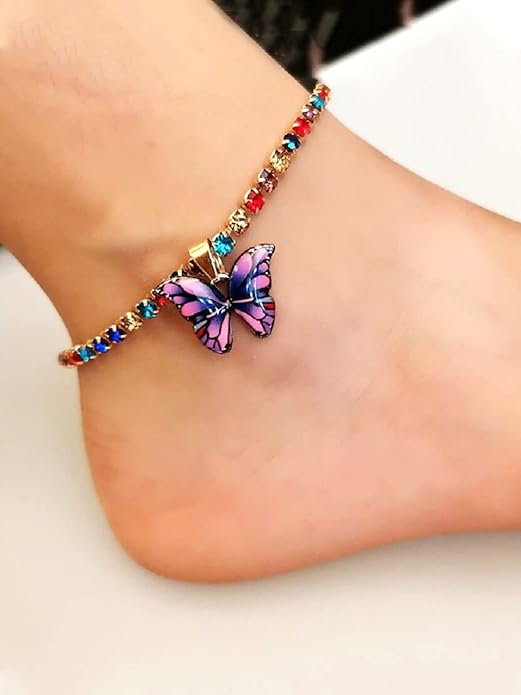 Multicolor Crystal Butterfly Designed Charm Anklet For Women and Girls