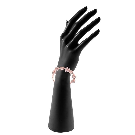 Rose Gold Plated Pink Flowers Link Chain Adjustable Size Charm Alloy Bracelet Decorated With Crystals for Girls & Women BROK1000009