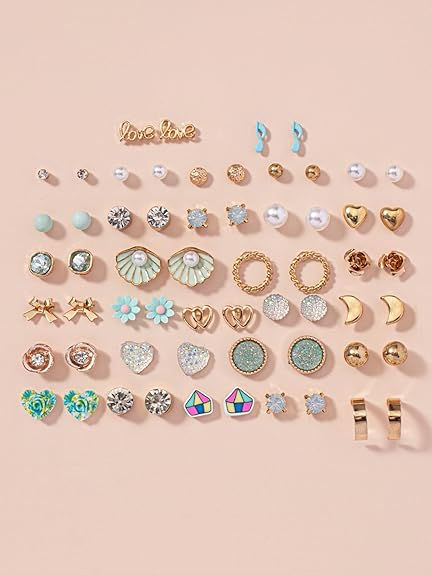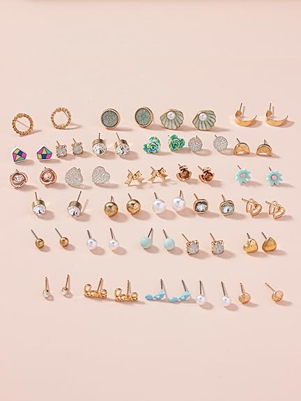 - 30 pairs combo of latest stylish design crystal peal stud earings
