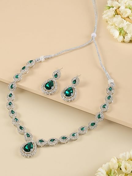 ZAVERI PEARLS Green Dazzling Austrian Diamonds Embellished Contemporary Necklace & Earring Set For Women-ZPFK18201